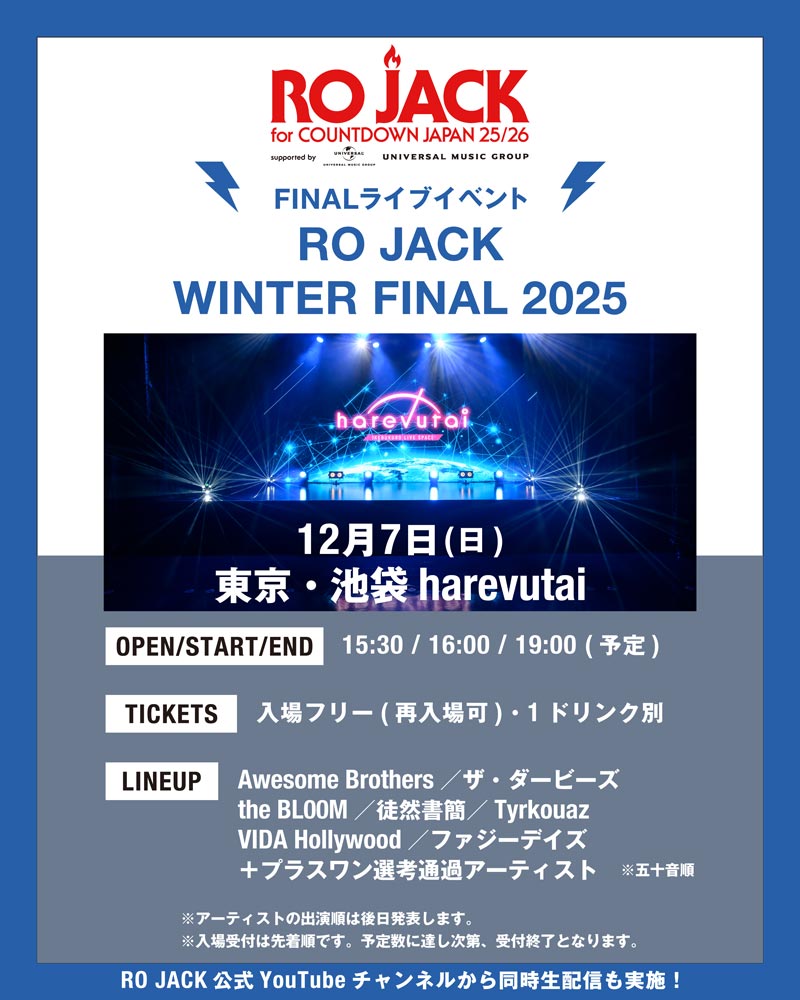 優勝アーティストを決めるFINALイベント「RO JACK WINTER FINAL 2025」を12/7(日)に東京・池袋harevutaiで開催いたします。